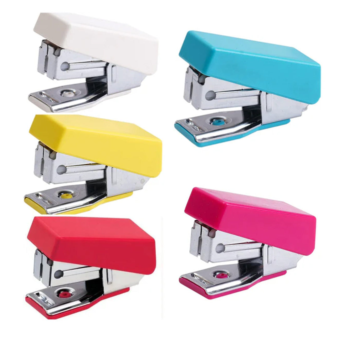- The mini stapler is available in a variety of body colors including pink, red, yellow, and blue, and in different shapes with 17mm and 25mm sizes.