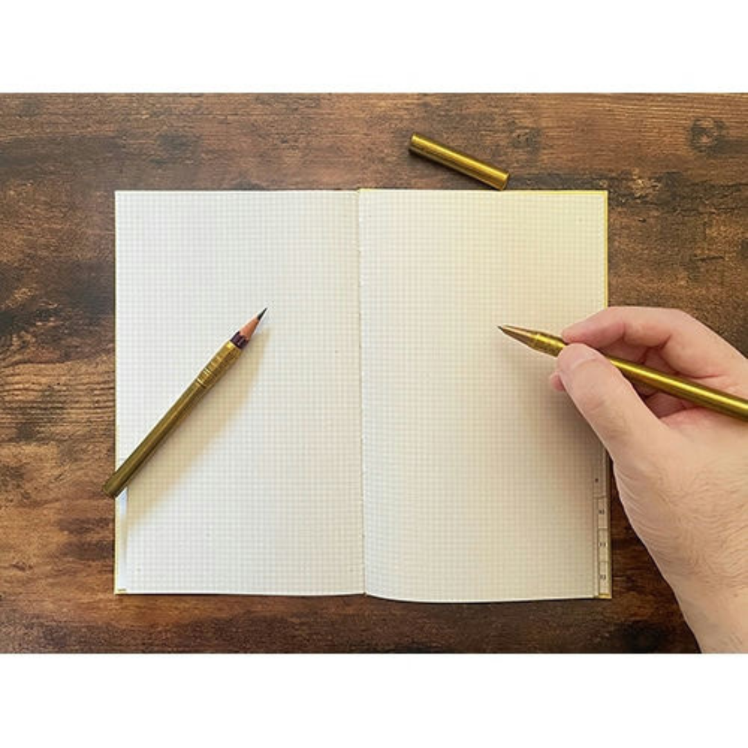 A traditional brass pencil auxiliary shaft is arranged into a ballpoint pen. The simple shape of the material will get better with use. You can enjoy the unique matte texture and aging of brass.