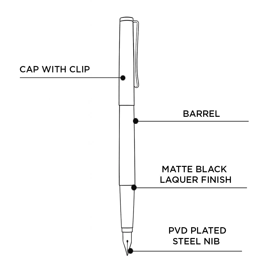 - The Lamy Lx all Black Fountain Pen is a special elegance of the LAMY studio series. This stealthed-out LAMY studio fountain pen has a matte black lacquer finish.