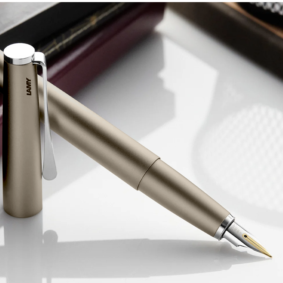 - This LAMY studio fountain pen has a palladium-plated finish with high gloss chrome grip.