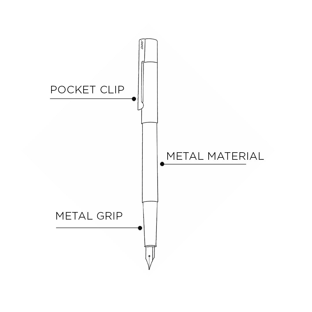 - The classic, almost industrial, design is enhanced by the high polish of the chrome fittings. Sophisticated and refined, a LAMY Scala will elevate your writing experience to new levels. This fountain pen comes with a blue LAMY ink cartridge as well as a LAMY Z27 converter to get you started writing right away.