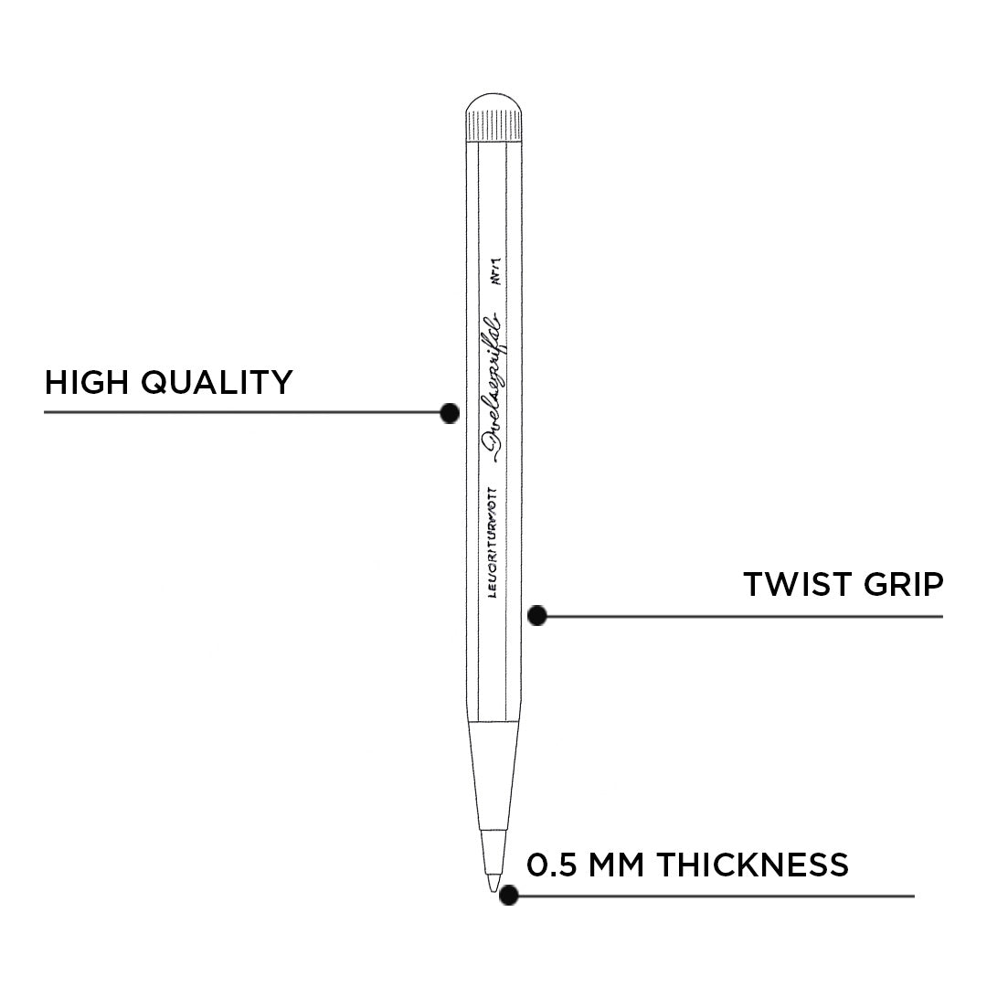 - Japanese Precision in Black- Equipped with a high quality Japanese gel refill in deep black and a thickness of 0.5 mm, the No.1 rotary stylus allows for a writing experience with precise lines and stylish elegance.