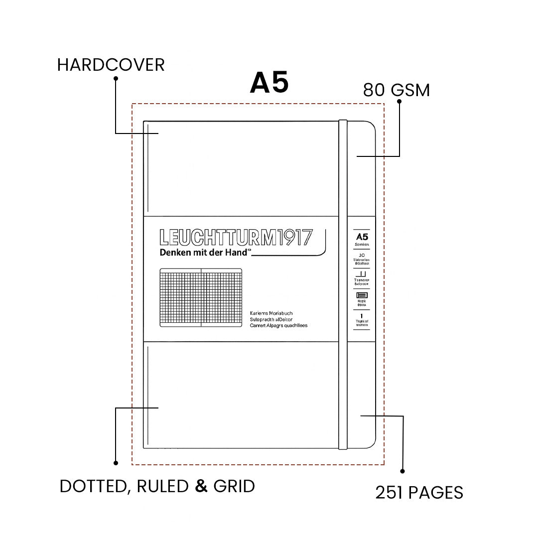 - The A5 MEDIUM notebooks are the perfect size with a wide range of colors making them ideal companions for all walks of life — this notebook series is perfect for midnight ramblings, daily entries, thoughtful reflection, careful chronicling and illuminating life stories