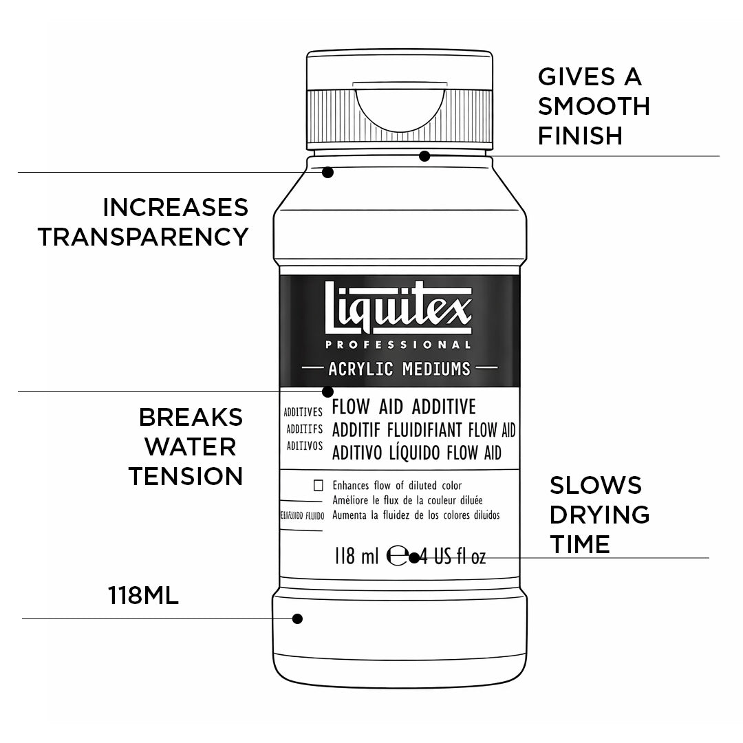 - Liquitex Professional Flow-Aid is a concentrated, water-based additive that improves the flow, absorption, and blending of acrylic paints, inks, and mediums.