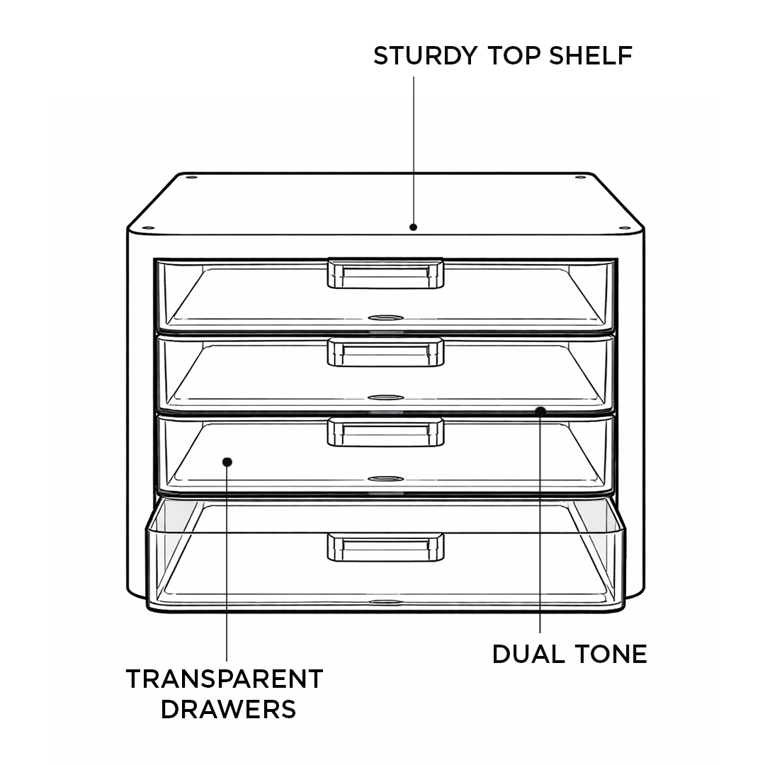 - With a clean, modern look and functional design, the litem clear 4 drawers multi cabinet helps maintain a clutter-free and well-organized environment.
