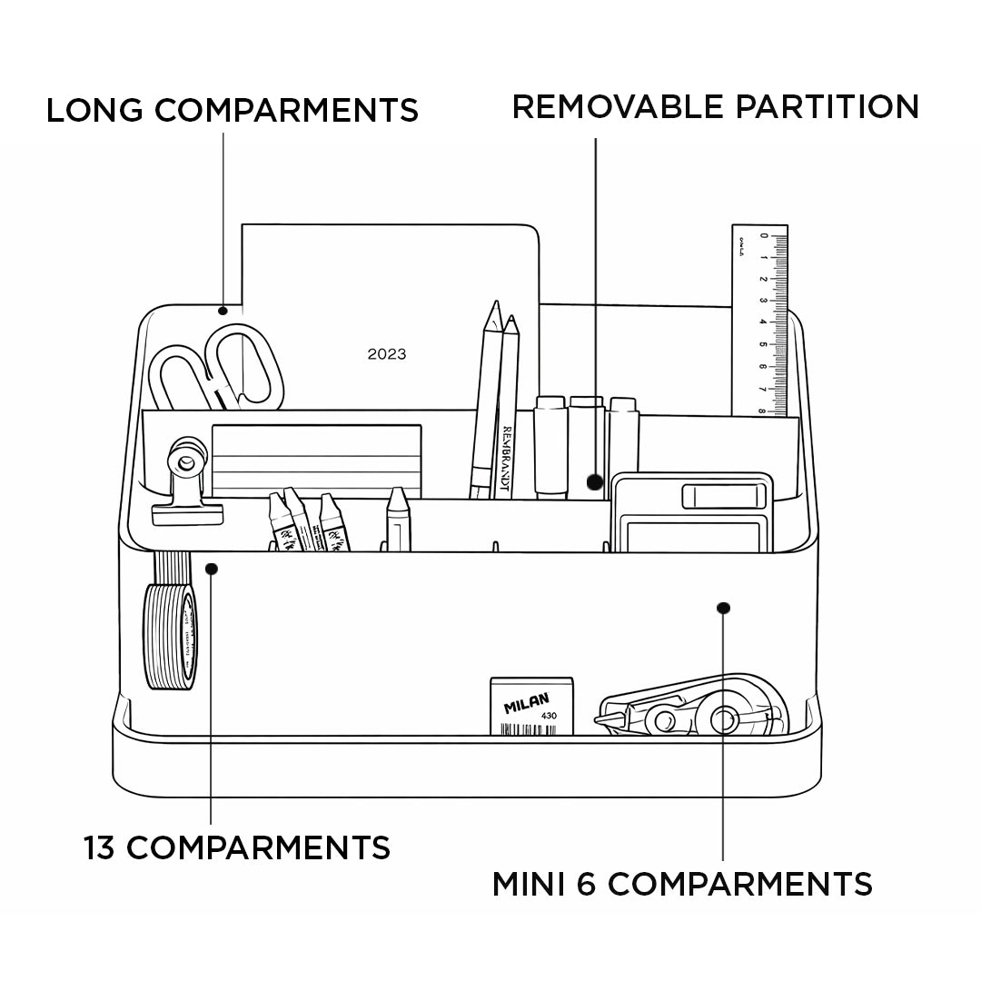 - You can easily adjust or remove the partitions to store pens, pencils, markers, scissors, rulers, sticky notes, or other office accessories in an organized way.