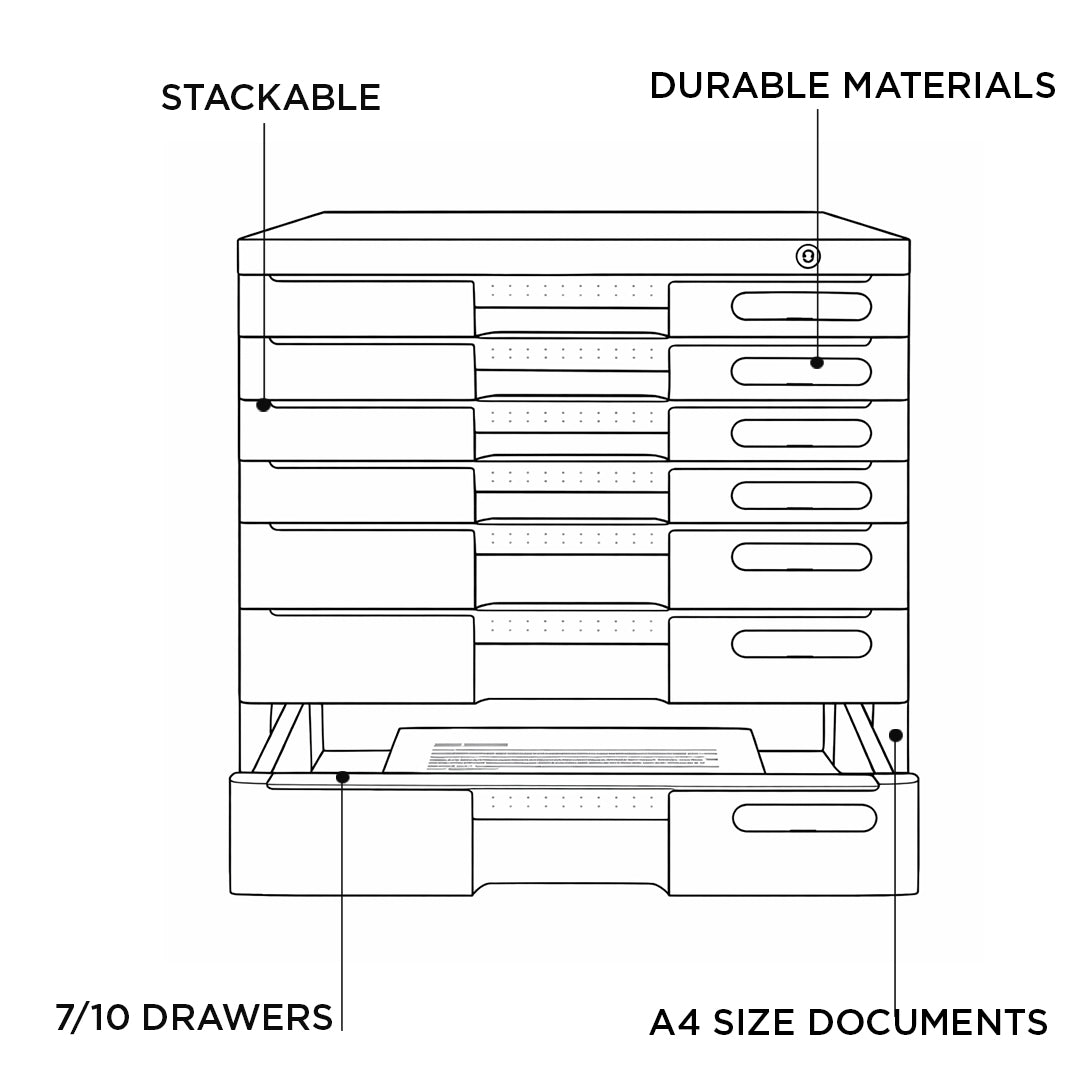 - Available in 7 drawer and 10 drawer variants, it offers flexible storage options to suit different organization needs.