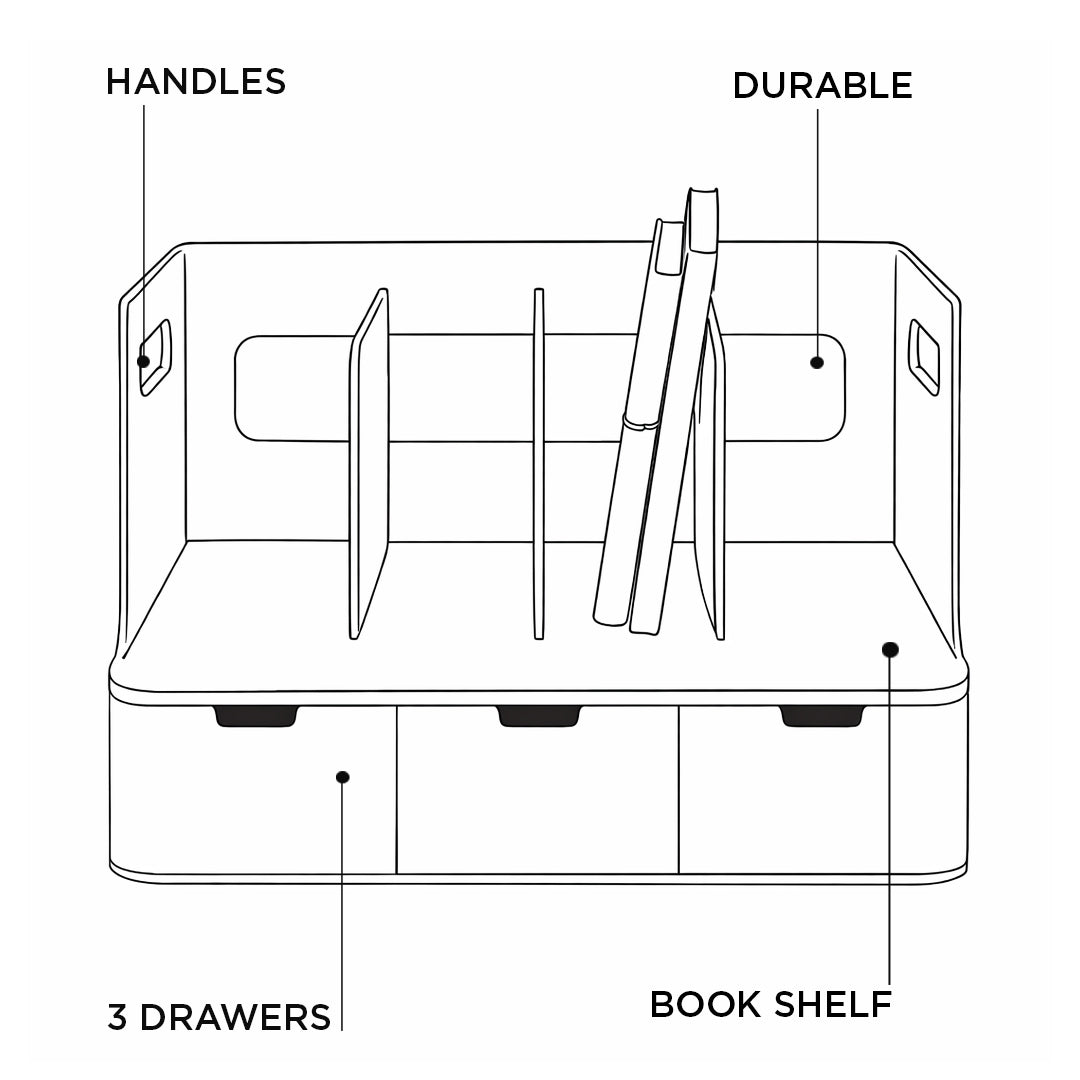 - It features 3 organiser compartments, allowing easy segregation and quick access to files, stationery, books, or household essentials.