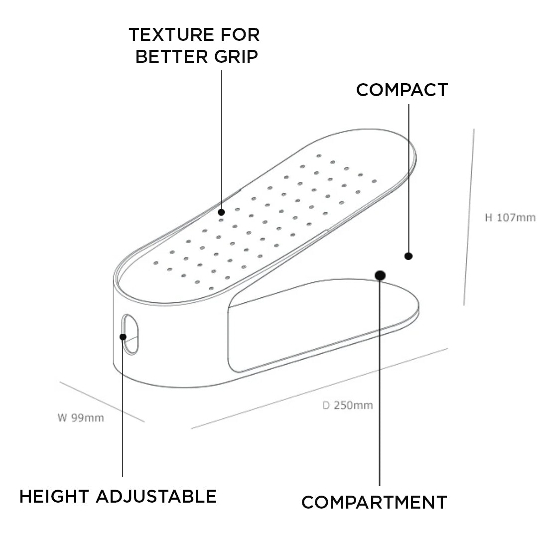 - Equipped with a strong grip surface, the shoe holder keeps footwear securely in place and prevents slipping or sliding.
