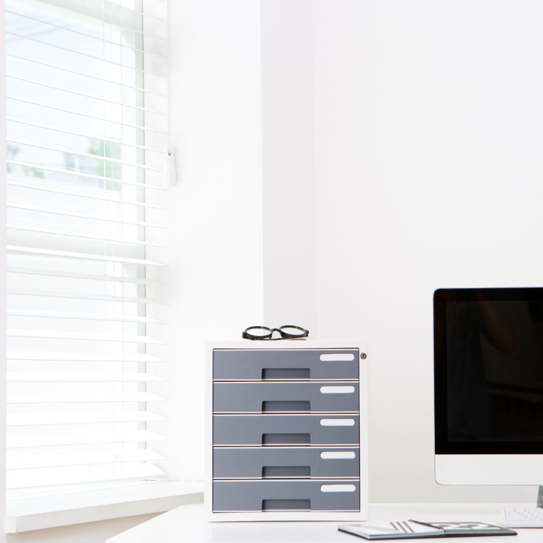 - This is a minimalist 5 Drawer Lockable cabinet desktop set and sensual filing cabinet that is essential for an office environment.