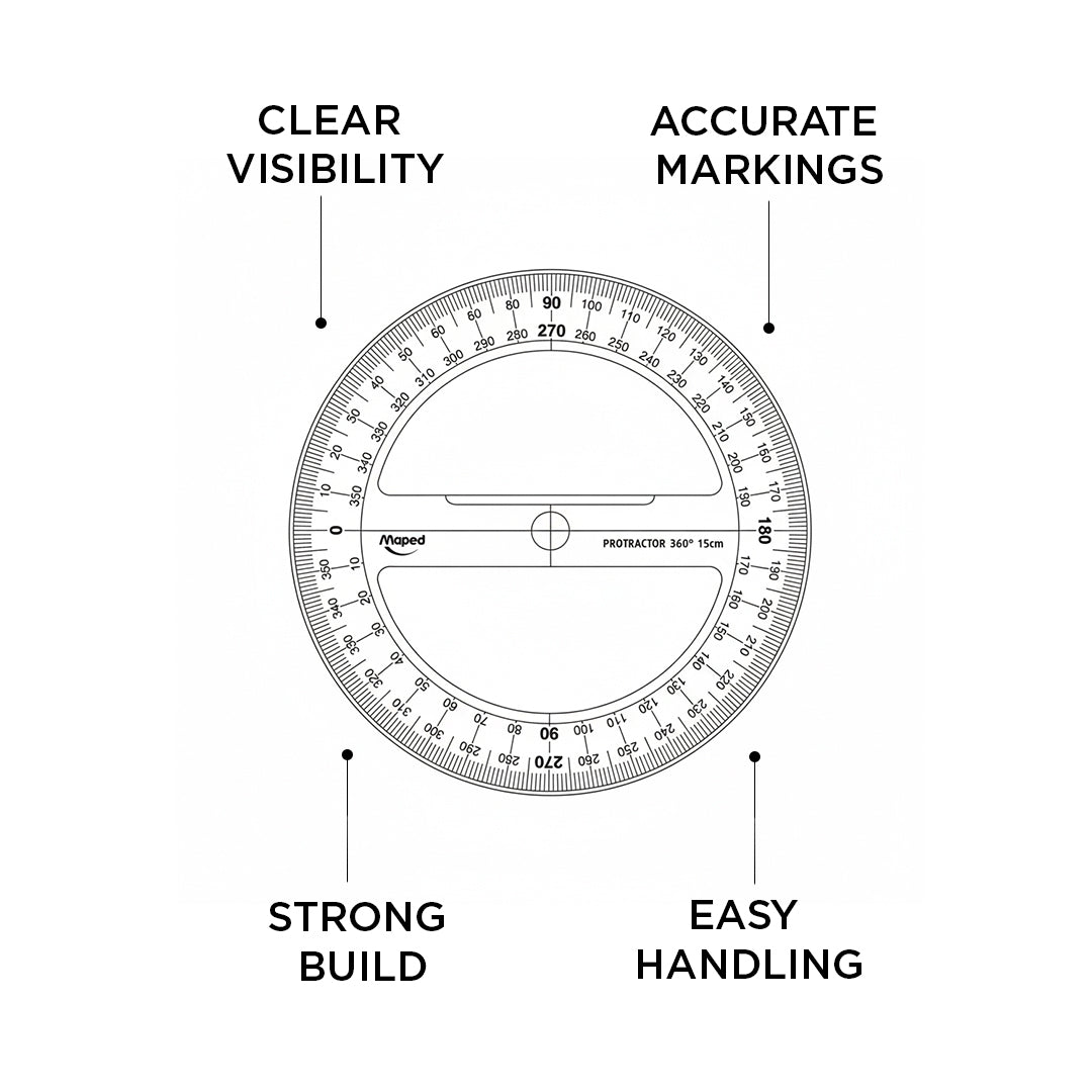 - Measure angles with accuracy and ease using the Maped 360° Transparent Protractor.