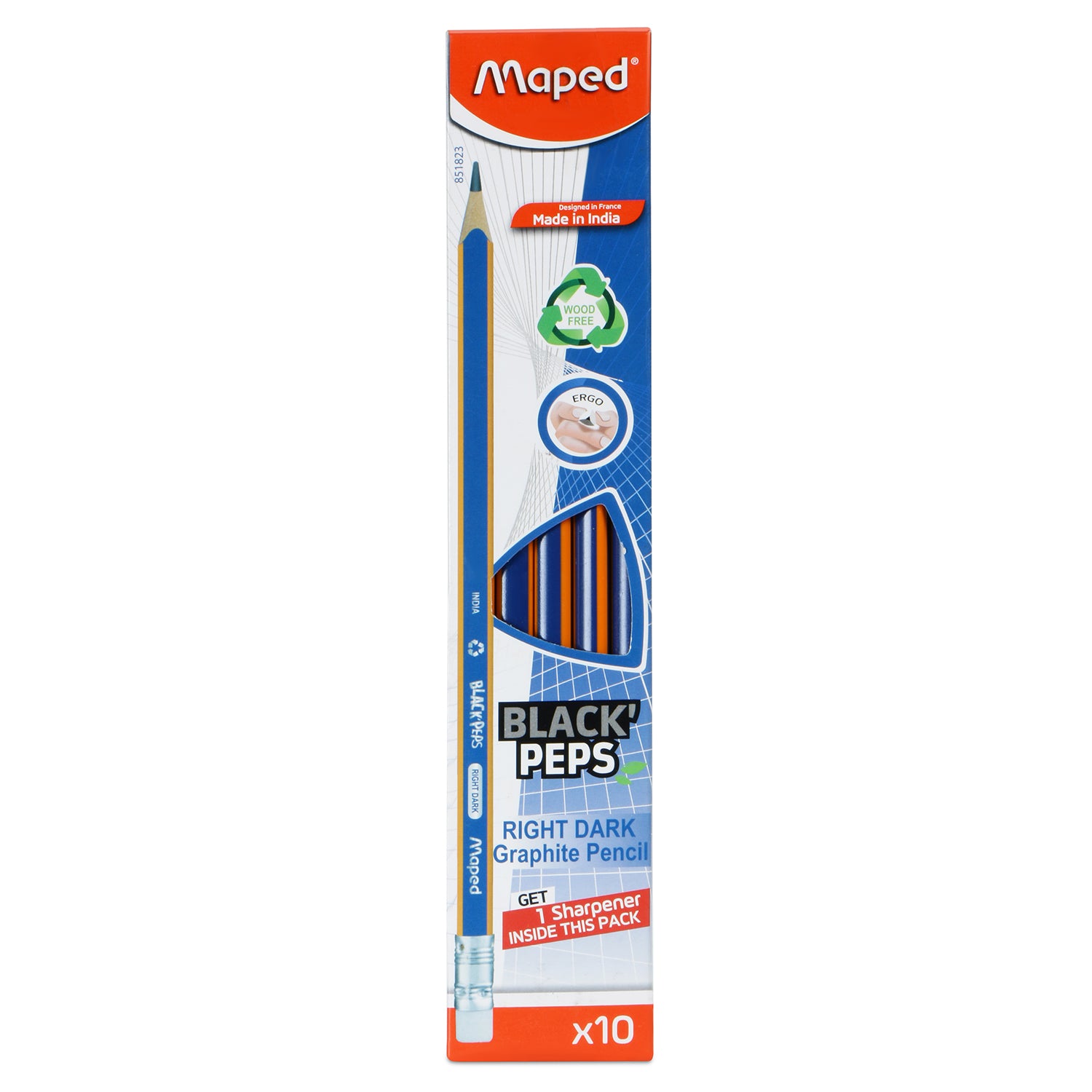 Maped Black Peps Right Dark Graphite Pencils- Pack of 10