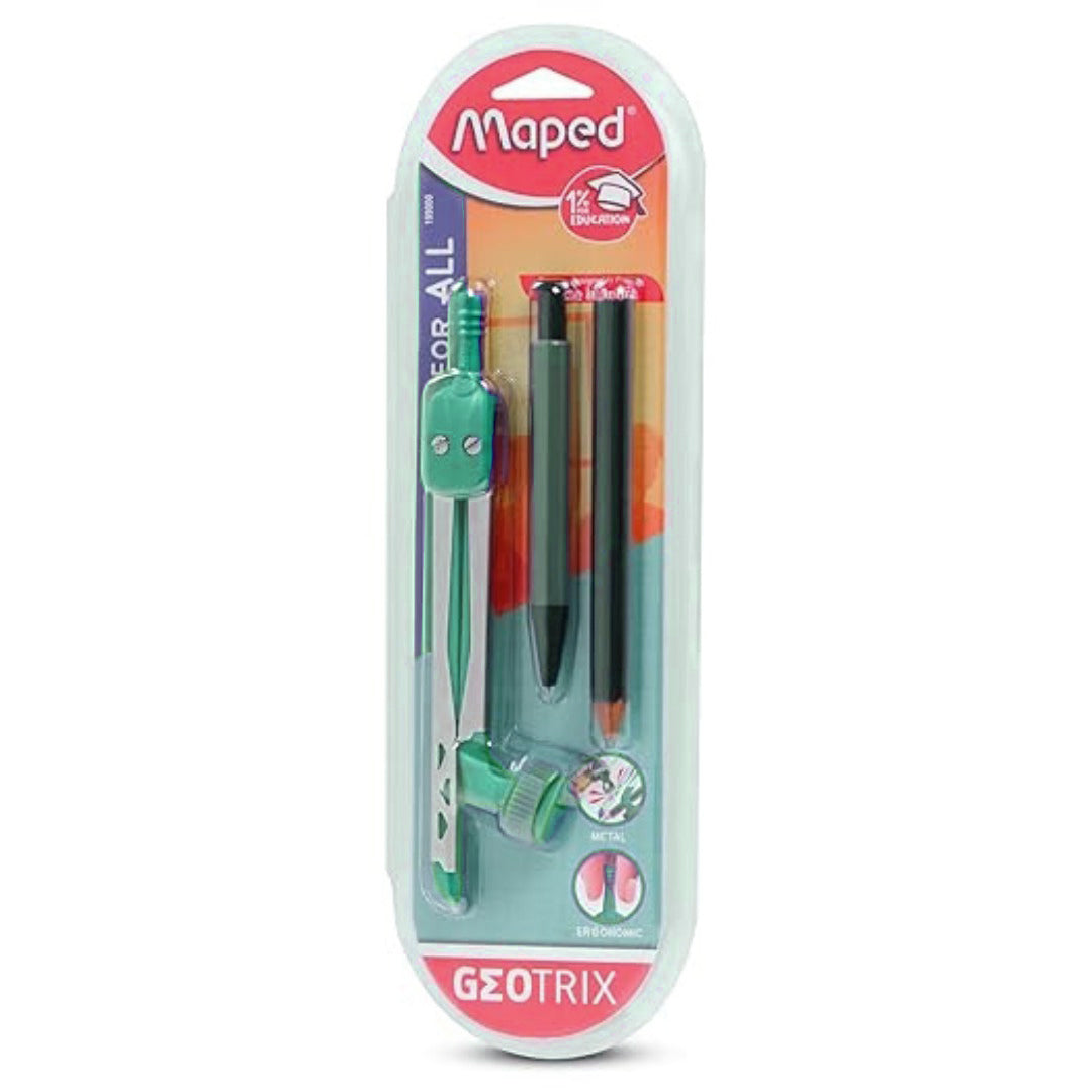 - Maped Geotrix Compass designed for accurate and smooth geometry constructions.This compass is made with high-quality material, making it long lasting and durable. Available in 2 vibrant colors.