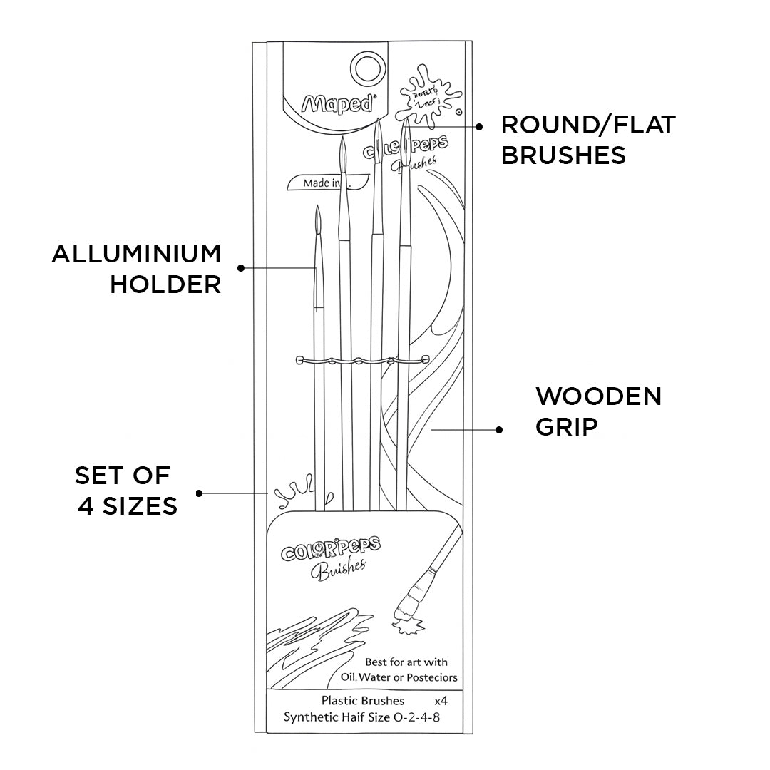 - The Maped Synthetic Brush Set (Set of 4) is ideal for painting, coloring, and creative art projects.