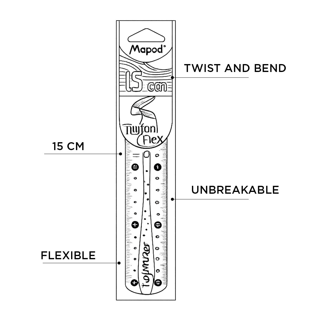 - The Maped Twist’n Flex Flat Ruler is made from high-quality flexible plastic that bends and twists without breaking.