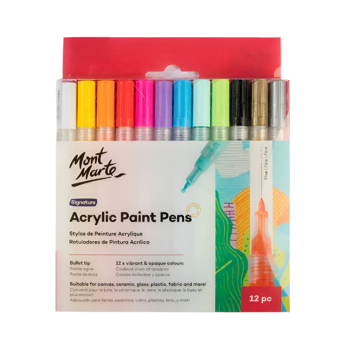 Mont Marte Acrylic Paint Pens Signature Fine Tip - Pack of 12