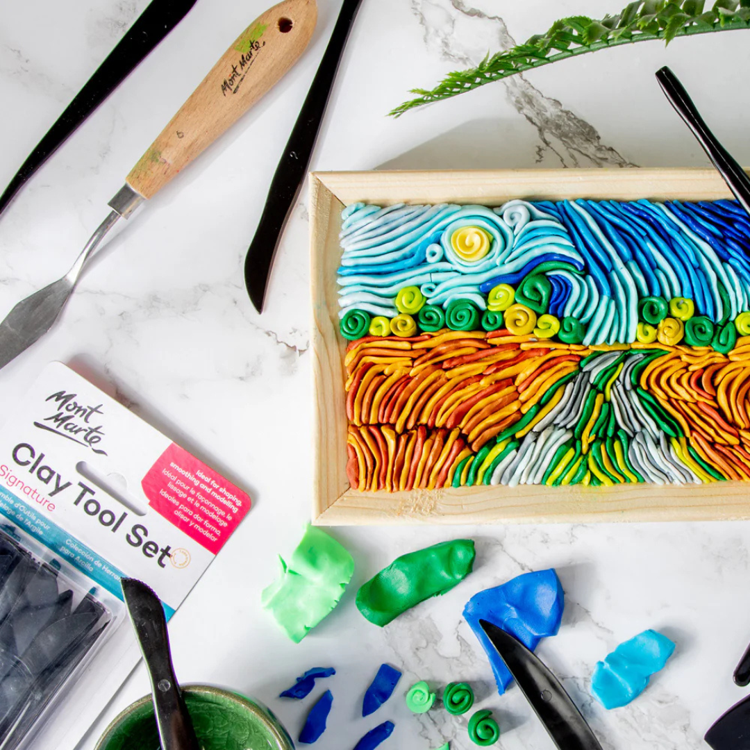 - If you're thinking about spending the day sculpting, you'll want our Clay Tool Set 14pc by your side! Inside the set are 14 different tools to help you smooth, flatten, shape and score clay.