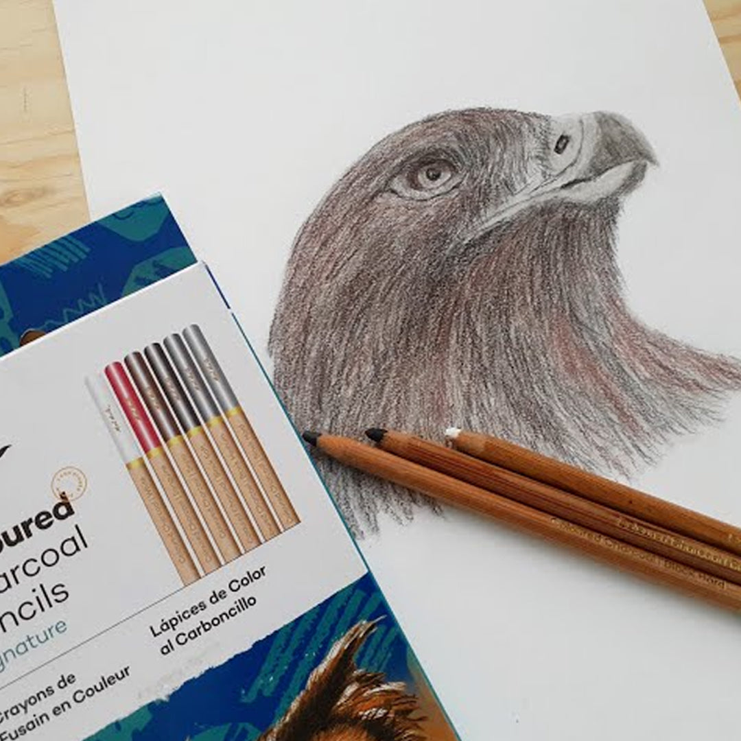- This Signature set includes an assortment of coloured charcoal pencils, combining the rich, natural texture of charcoal with vibrant colour tones.