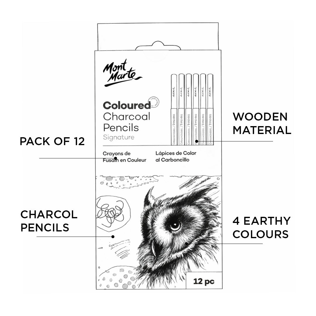 - The Mont Marte Coloured Charcoal Pencils Signature Set is a premium-quality drawing set designed for artists who enjoy expressive and creative techniques.
