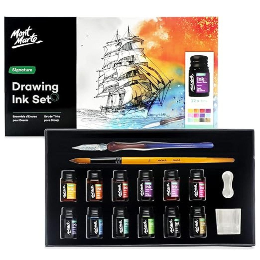 - Ideal for artists, students, and hobbyists, the mont marte drawing ink colour signature Set provides the tools to explore creativity, add depth, and achieve professional-quality effects in every artwork.