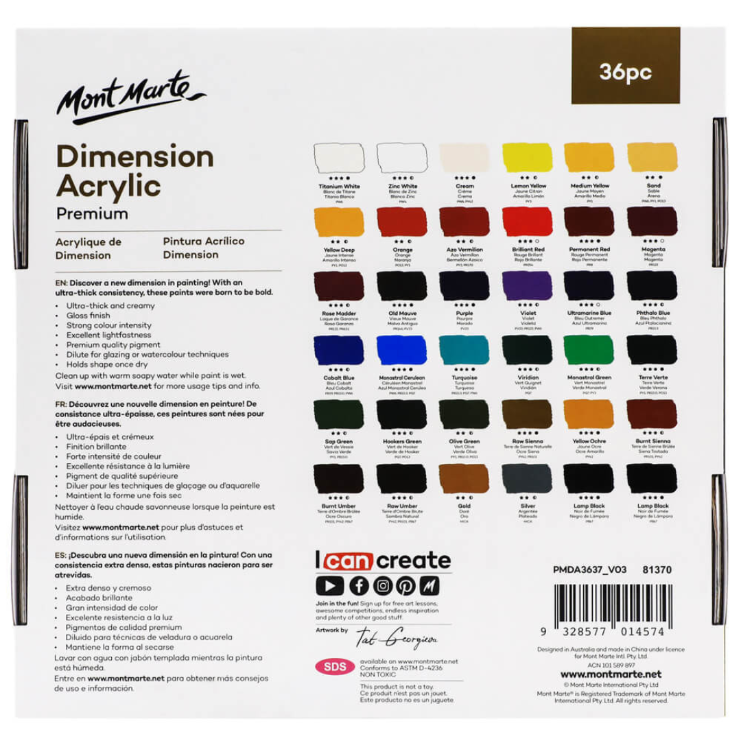 Mont Marte Dimension Acrylic Paint Set 36 pc