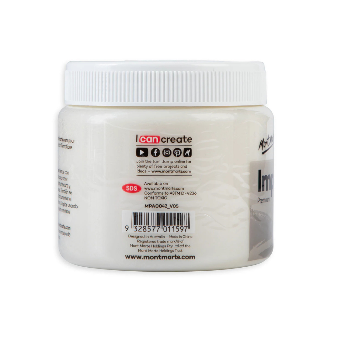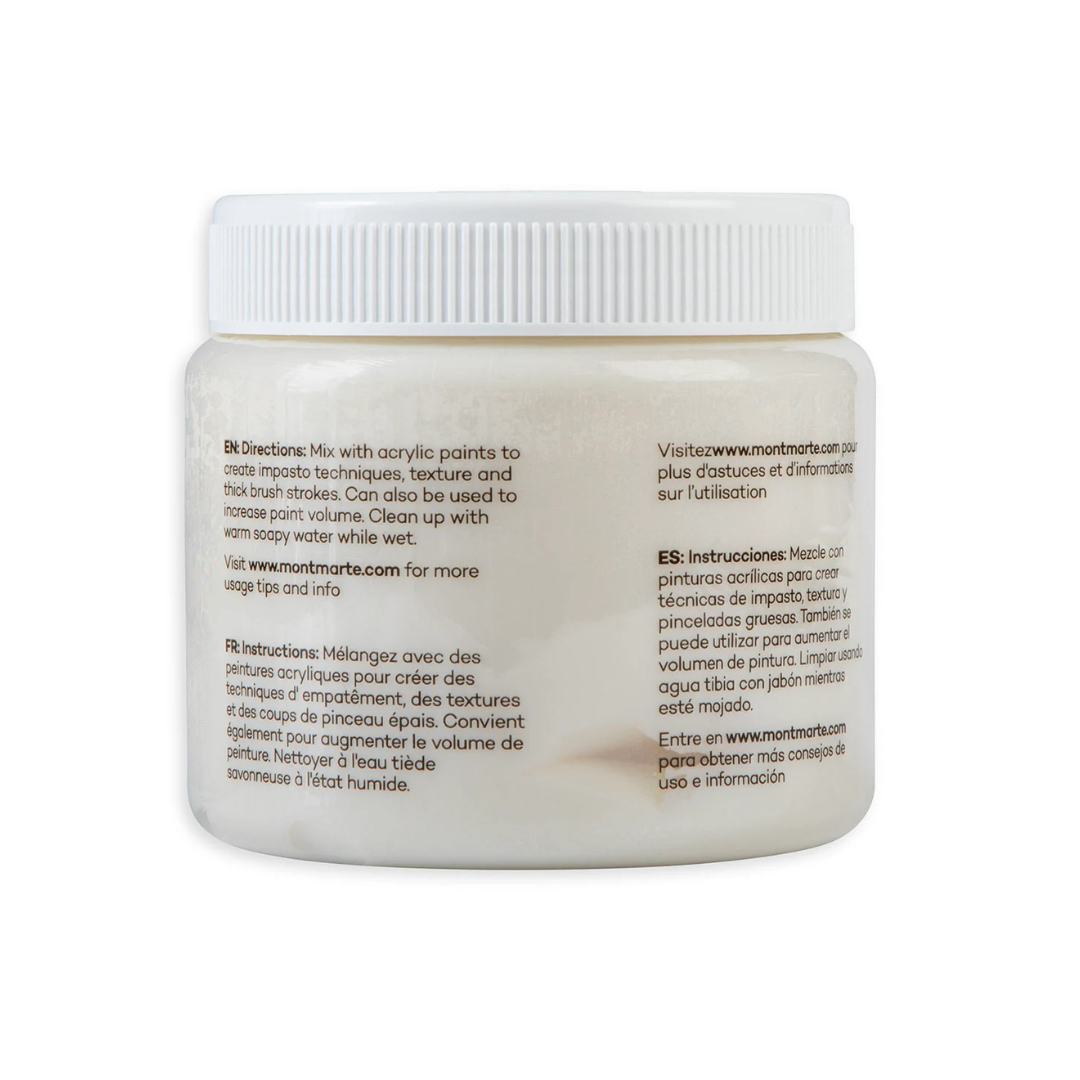 - Mont Marte Impasto is a clear drying medium used to create texture and retain brush strokes.