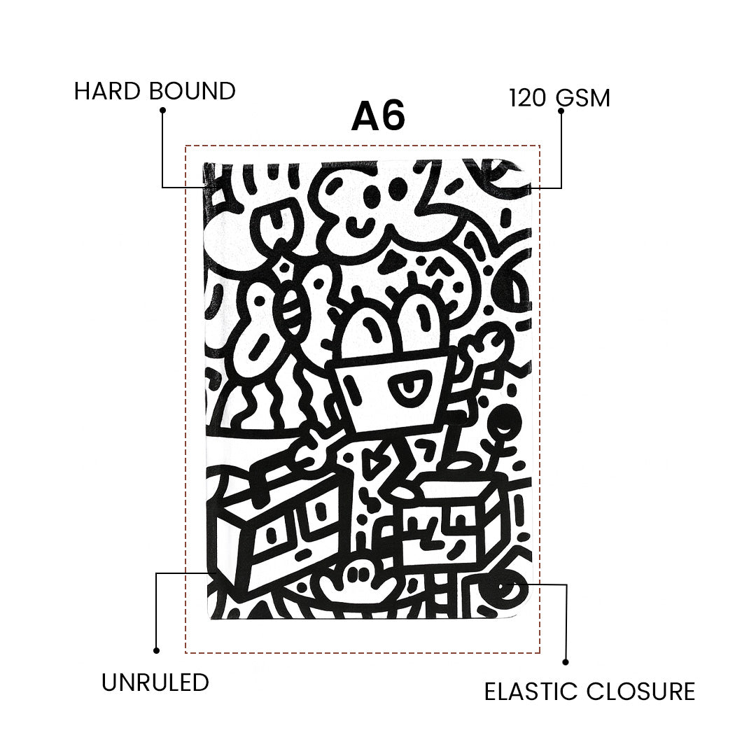 - The front and back cover of this diary feature a Doodle Art made by The Doodle Monk.