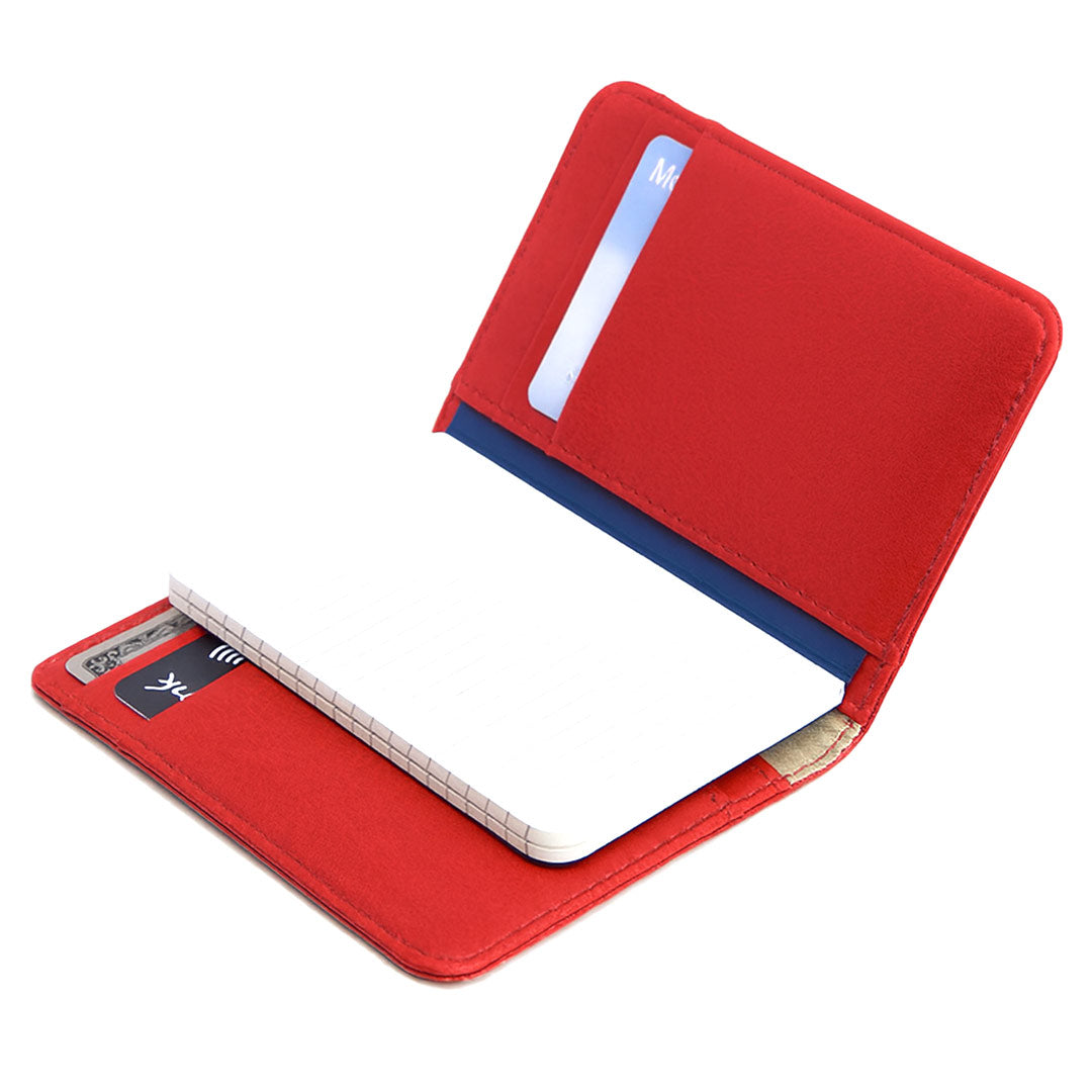• A Mini notebook size 64 x 102 mm (2.5 x 4 in.) fits perfectly in the Card Holder and is a standard inclusion with this product. The 96 page notebook is handy to make quick notes on the move. Cover stock is 285 GSM Dali felt mart uncoated from Gruppo Cordenons Spa, Italy. The notebook is center thread sewn with back squared and rounded corners.
