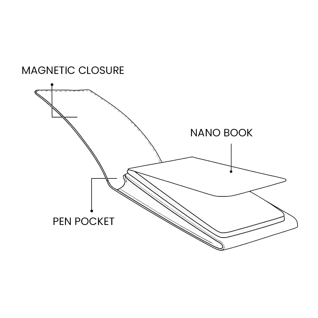 - A Nano notebook fits perfectly in the journal and is a standard inclusion with this product.