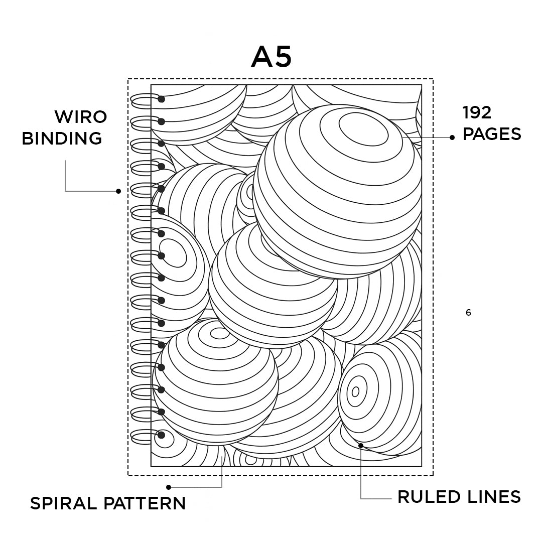 - The sturdy wiro binding allows the notebook to lay flat for easy writing, while the compact A5 size makes it highly portable, fitting comfortably in bags or backpacks.