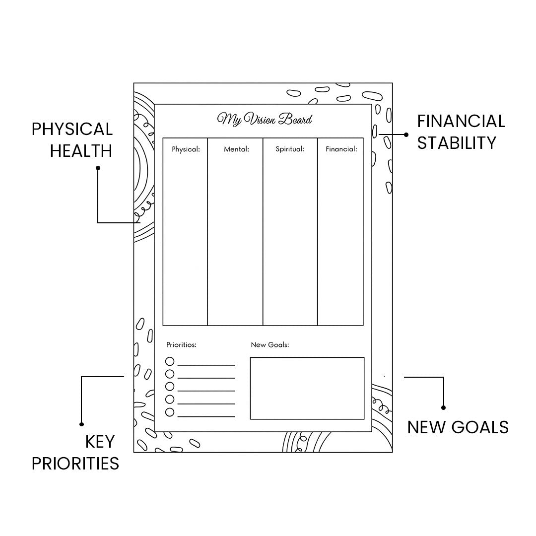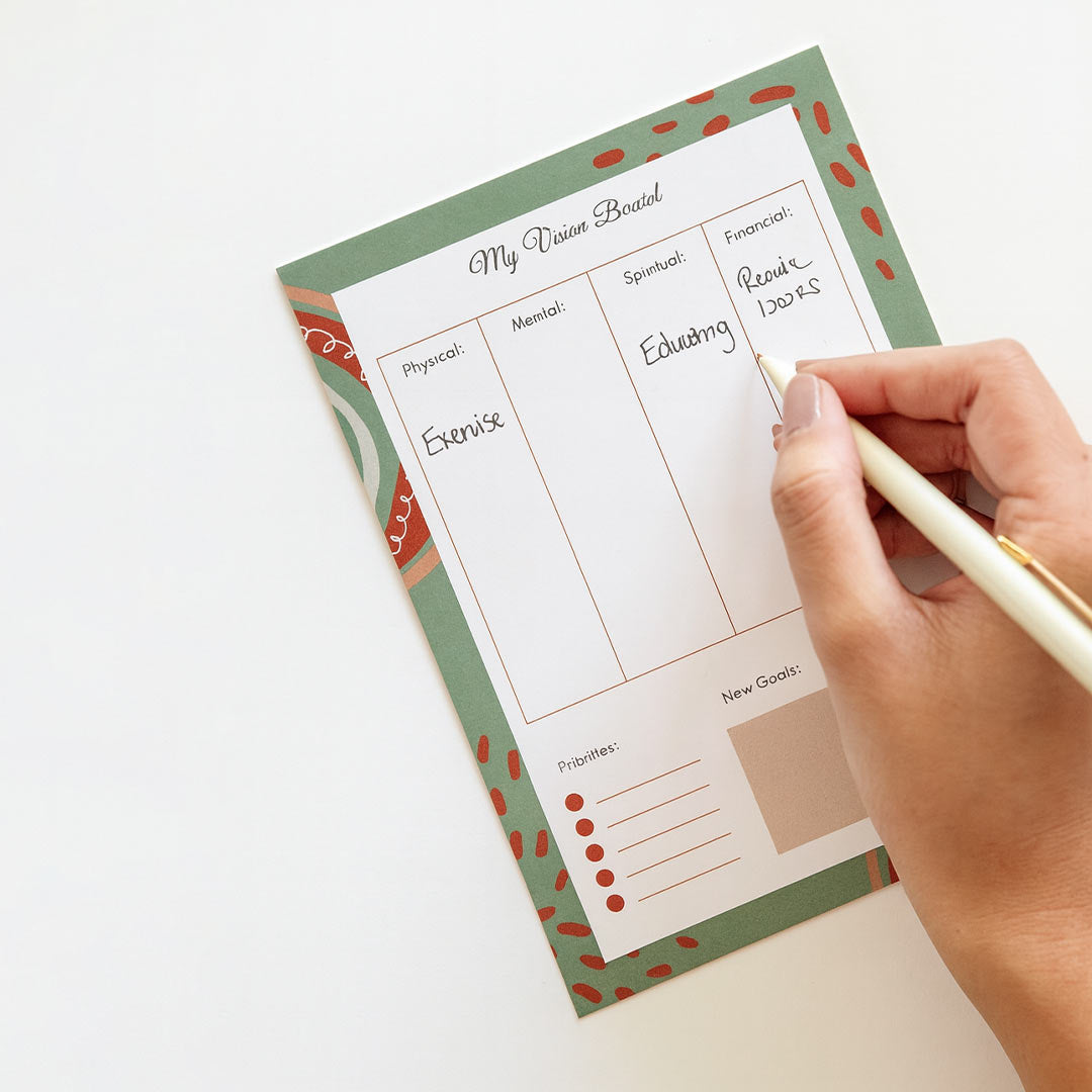 - Designed to help you visualize and plan your goals, this notepad offers dedicated space to jot down ideas, create mood boards, and map out your aspirations.
