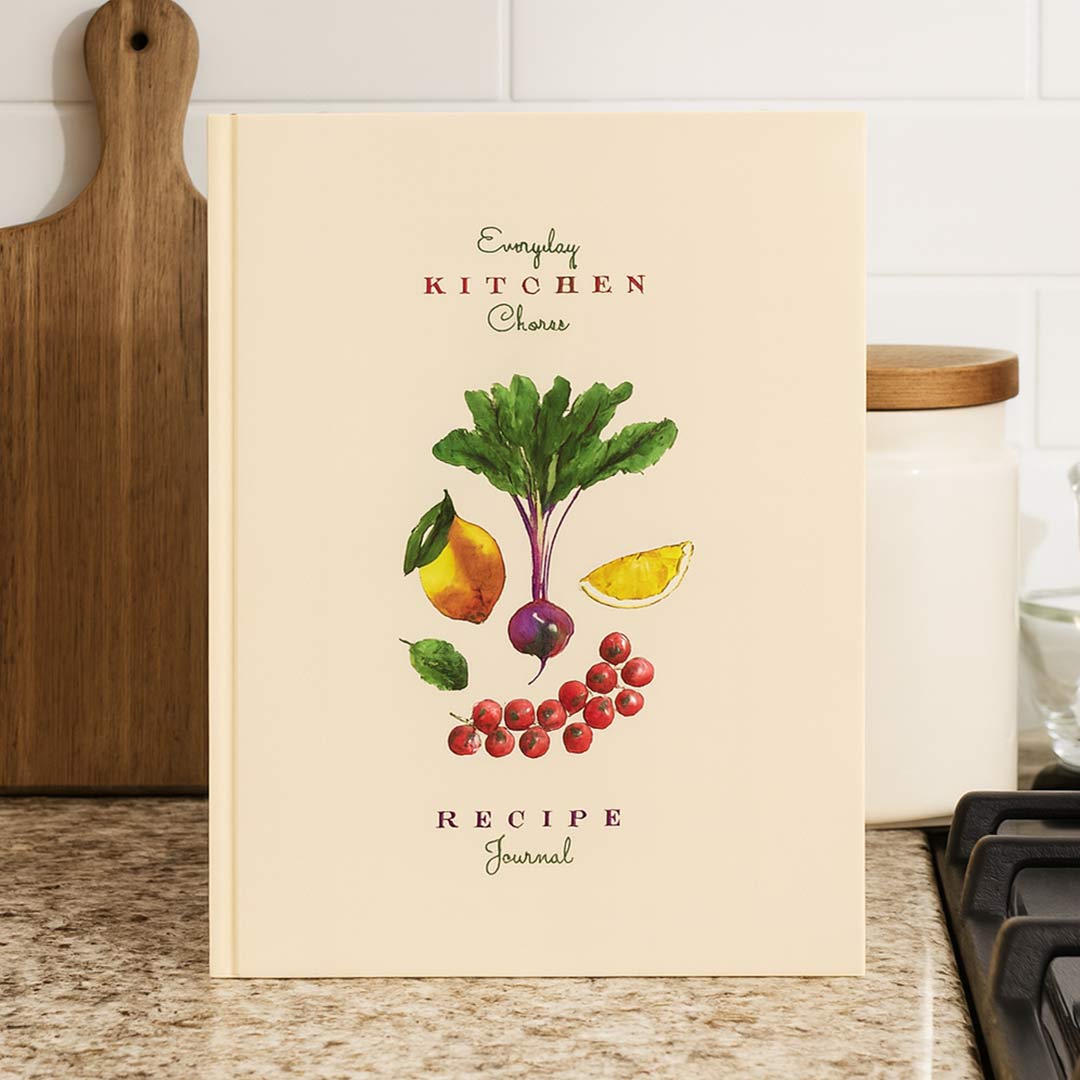 - Thoughtfully designed, this journal helps you organize daily kitchen tasks while also giving you space to note down your favorite recipes.