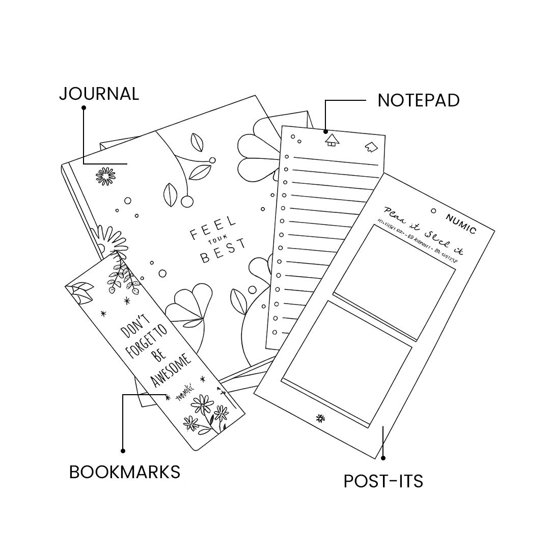 - Prioritize your well-being with the Numic Feel Your Best B5 Wellness Journal, thoughtfully designed to help you build healthier habits, track progress, and cultivate positivity every day.