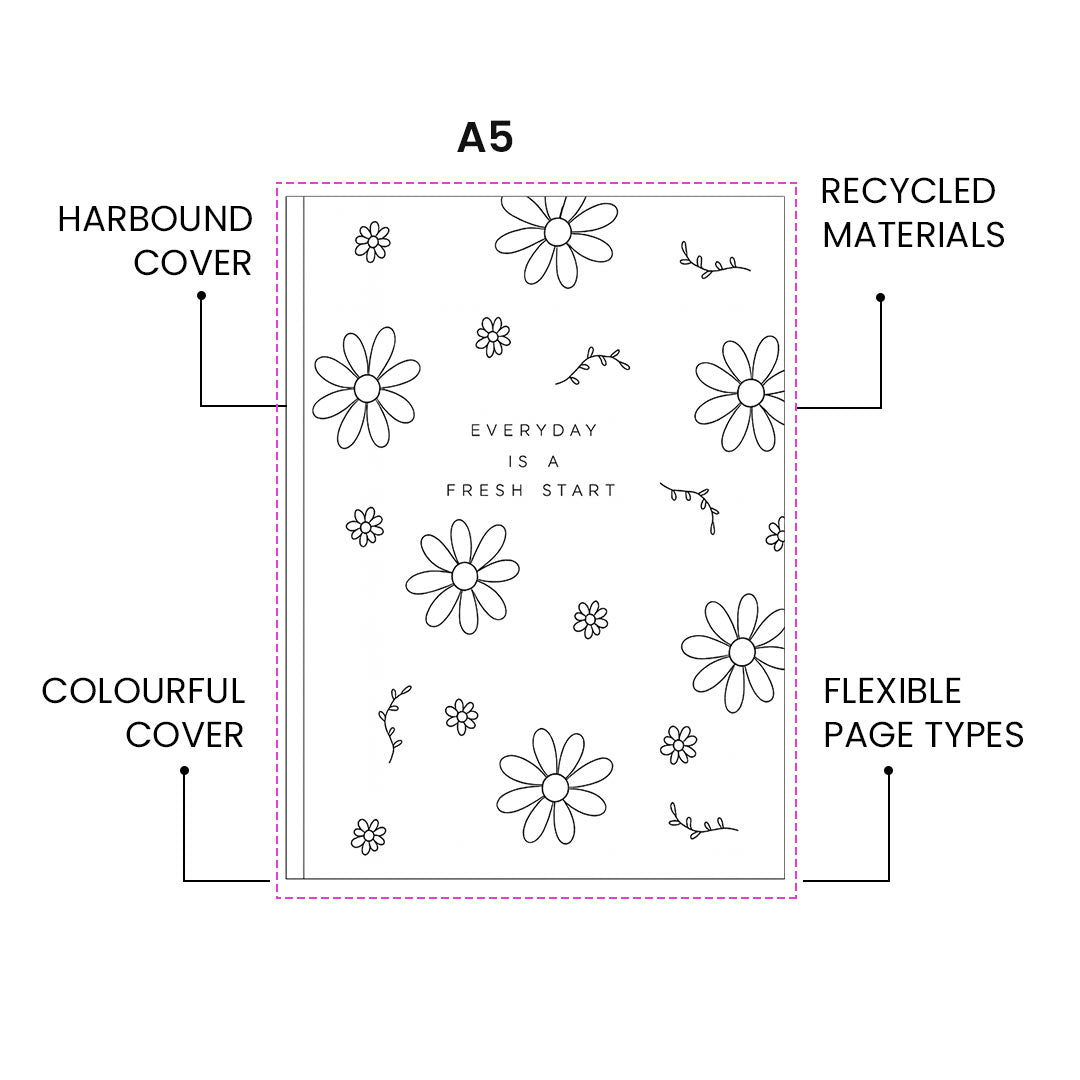 - Featuring graph/grid pages, this A5-sized notebook combines portability with functionality.