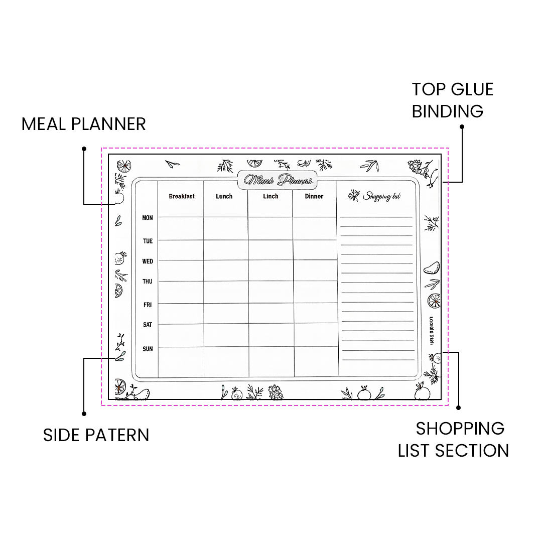 - Designed with a clear and structured layout, this planner helps you map out daily and weekly meals, track groceries, and maintain a balanced diet.