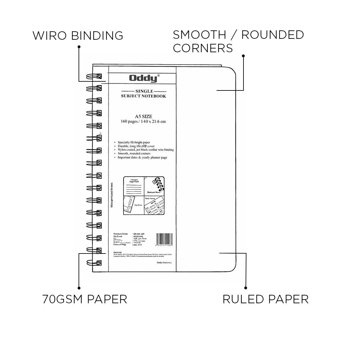 - The Oddy Single Subject Ruled Notebook is designed for students and professionals who value quality and organization.