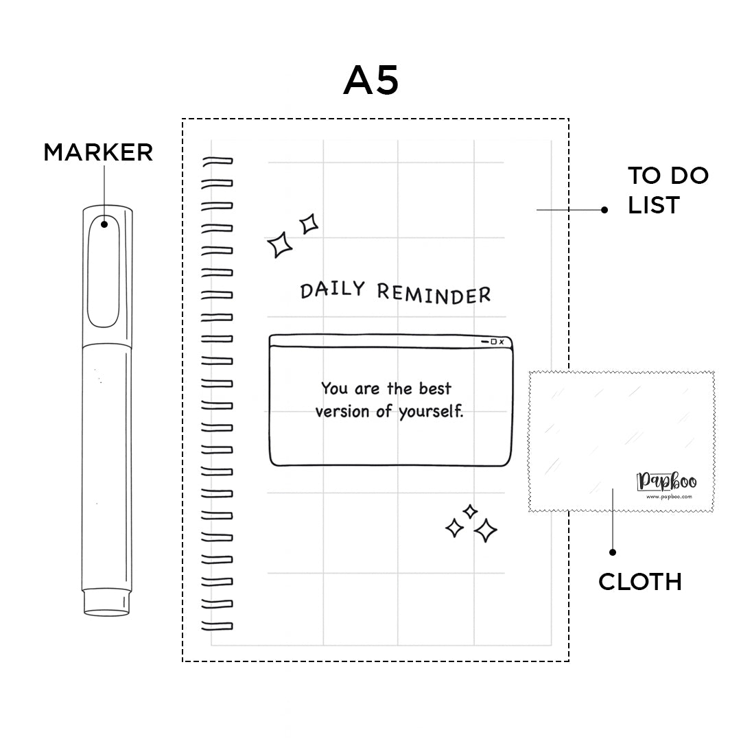 Papboo Re-writeable/Reusable A5 To-do List(with Fine Tip Marker)