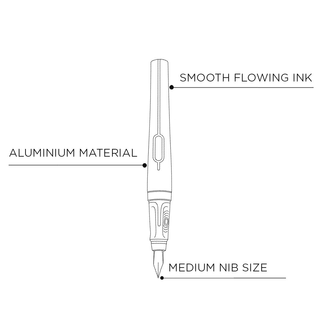 - Crafted with a lightweight yet durable aluminium body, the pen offers a premium feel with excellent balance, ensuring a smooth and comfortable writing experience.