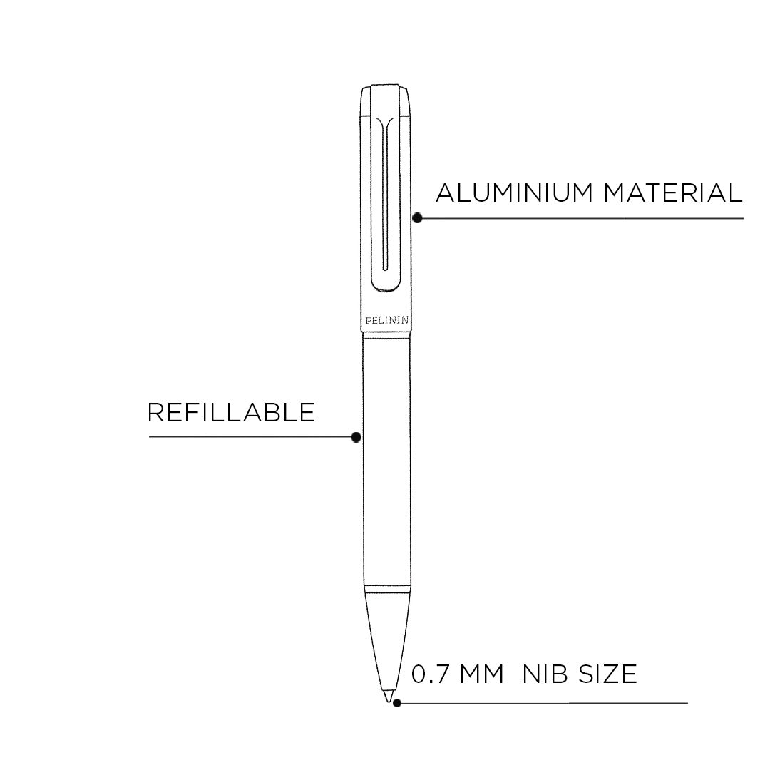 - Constructed from high-quality aluminium, the pen features a sleek, durable body with a refined metallic finish.