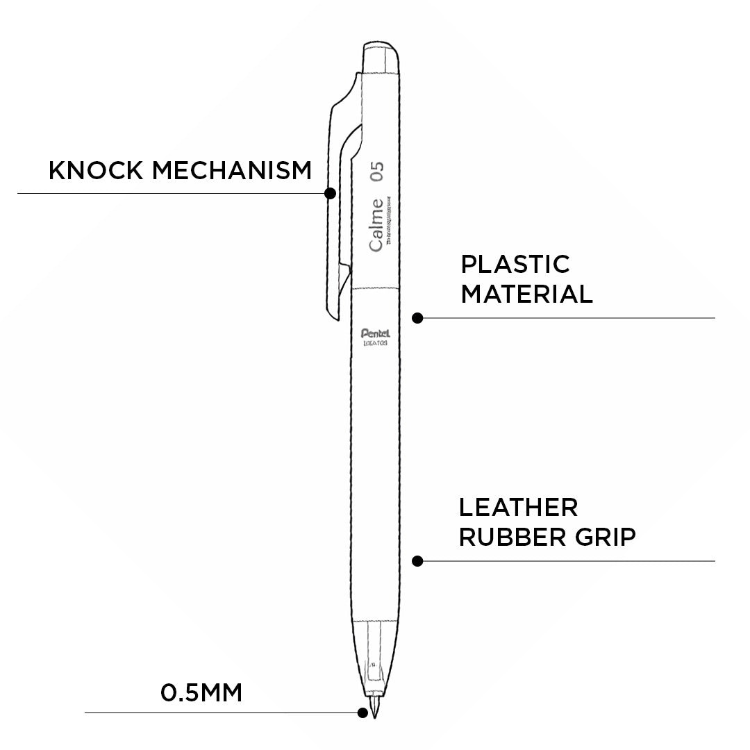 - One of the standout features of the Pentel calme is its quiet knock mechanism, which reduces clicking noise and provides a soft, smooth retraction perfect for professional or classroom environments.