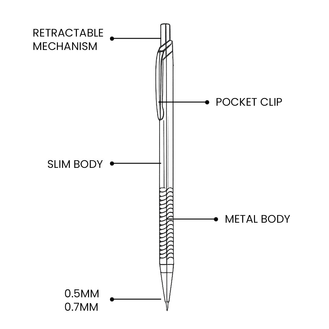 - Its retractable tip mechanism protects the lead when not in use, preventing breakage and making it safe to carry in pockets, pencil cases, or bags. The pencil delivers consistent, clean lines, ideal for writing, note-taking, drafting, and technical work.