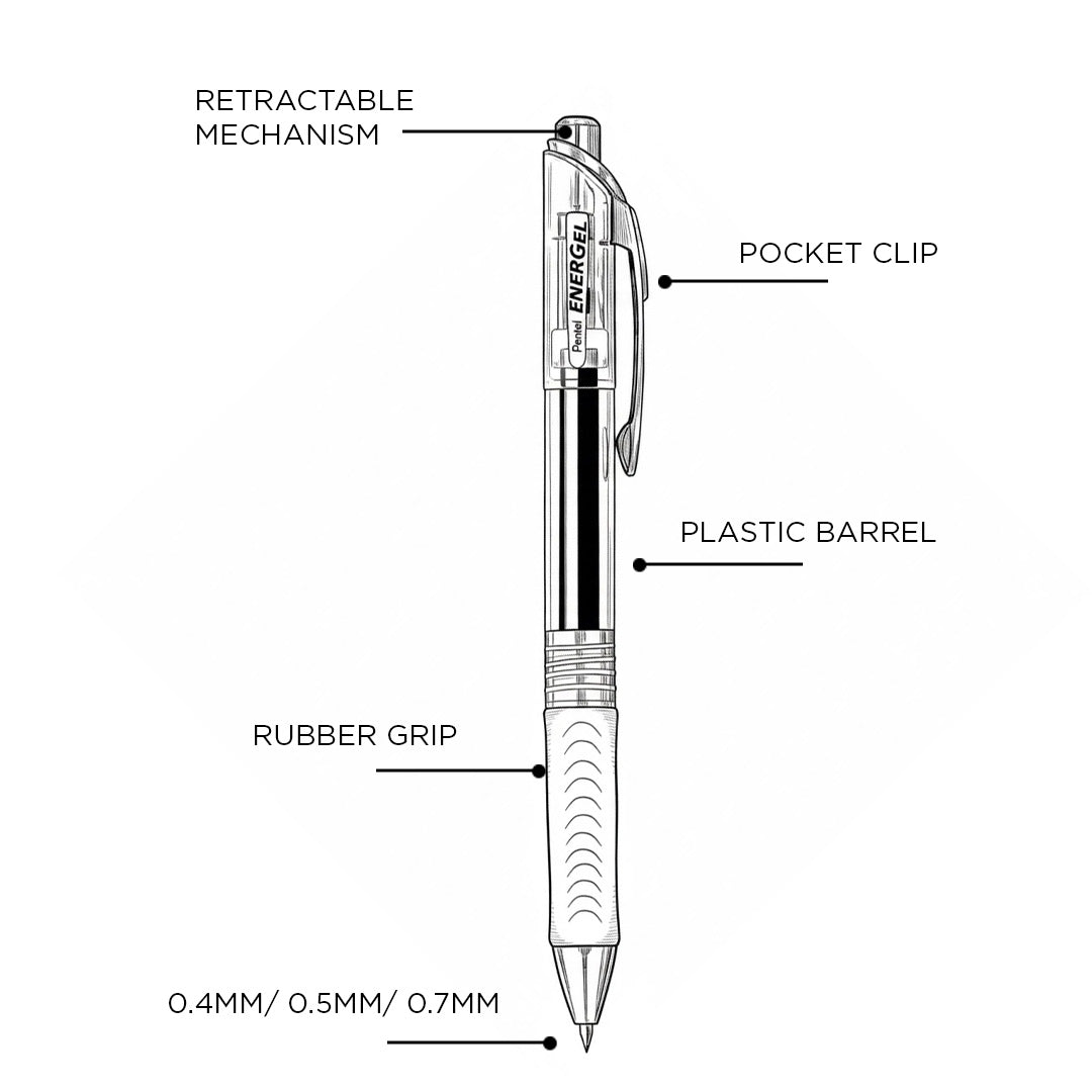- Powered by Pentel’s advanced EnerGel quick-drying gel ink technology, the pen delivers smooth, consistent ink flow with clean and sharp lines.