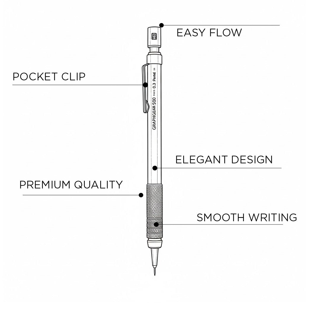 • Designed for precision and professional performance, the Pentel GraphGear 500 Automatic Drafting Pencil is ideal for drafting, technical drawing, and detailed sketching.