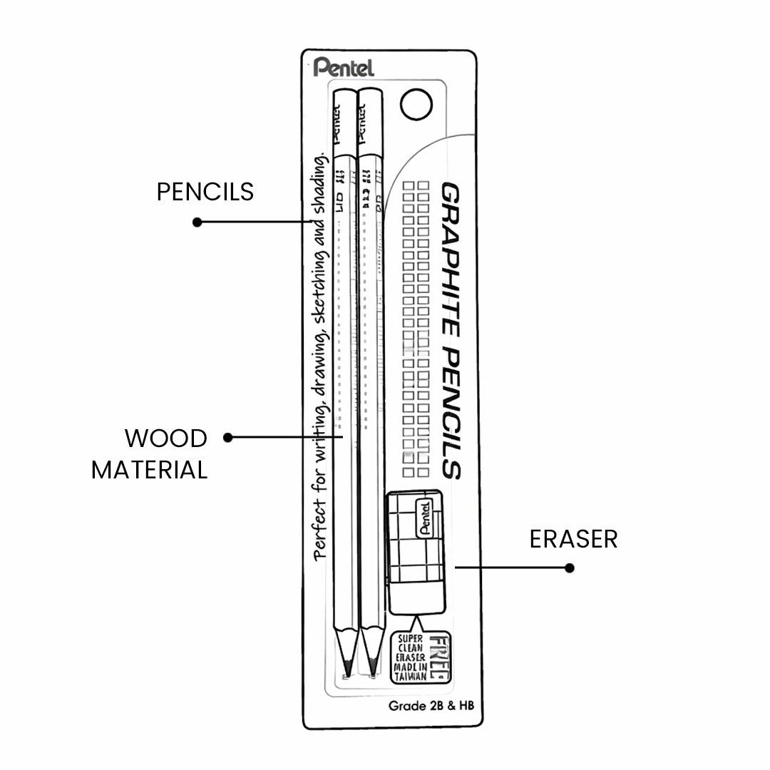 - Pentel Graphite Pencils with eraser are made from high-quality wood for smooth sharpening and durability.