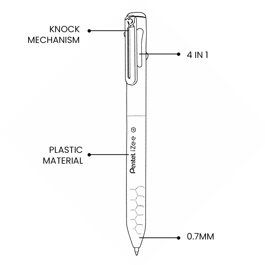 - Enjoy versatile writing with the pentel iZee 4 in 1 ball point pen 0.7mm, designed for convenience and smooth performance.