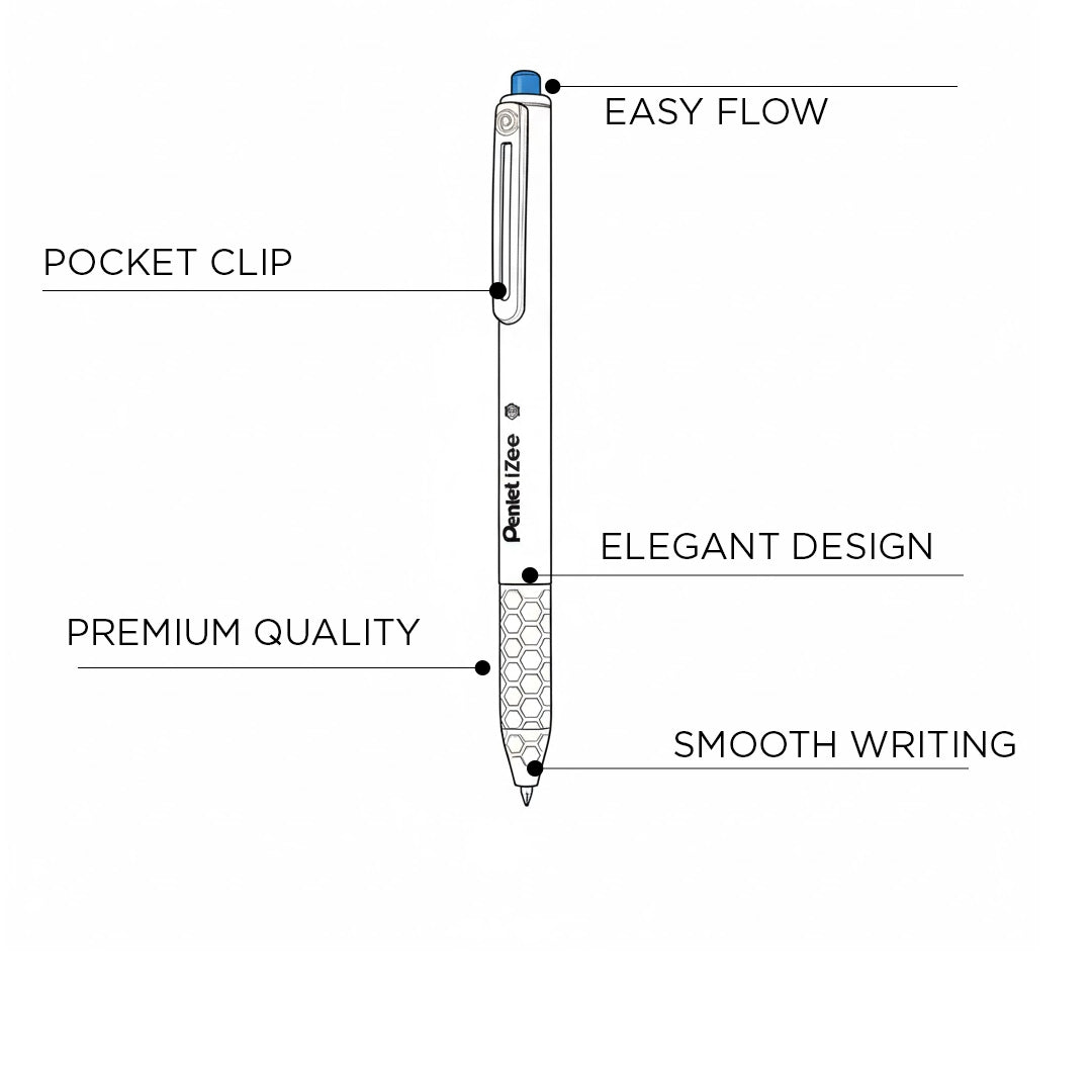 - Write smoothly and stylishly with the pentel iZee click ballpoint 0.7mm pens set.