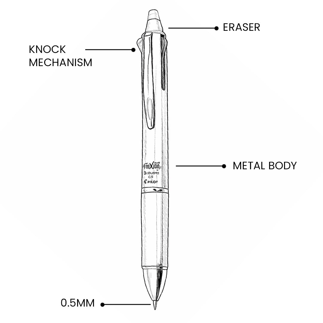 - The Frixion gel ink is thermosensitive, allowing you to erase mistakes cleanly using the built-in metal eraser.