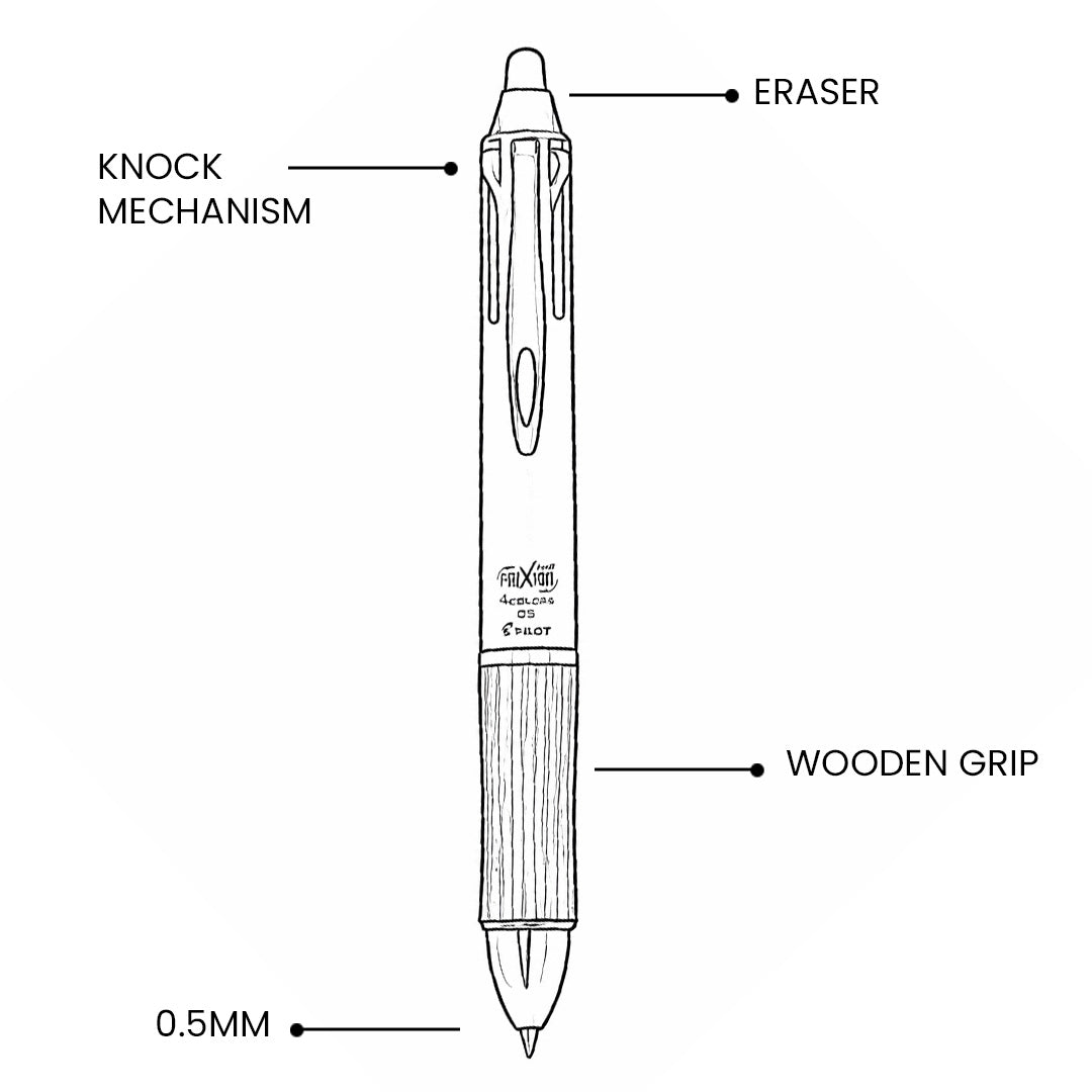 - Experience the perfect blend of style, functionality, and convenience with the Pilot FriXion Wood 4-Color Gel Ink Multi Ball Pen.