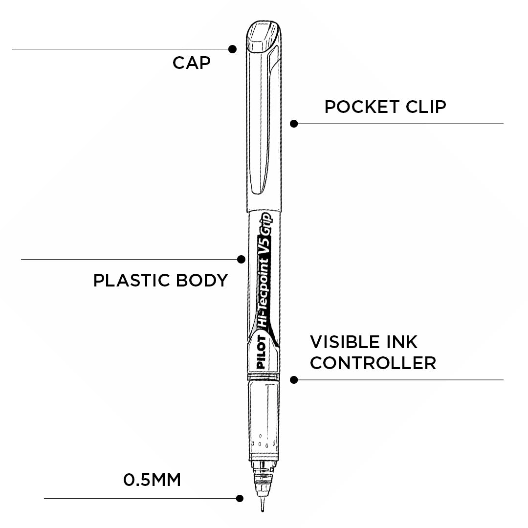 - Experience the perfect balance of style, comfort, and precision with the Pilot V5 Grip Roller Ball Pen, designed for smooth, effortless writing in everyday use.