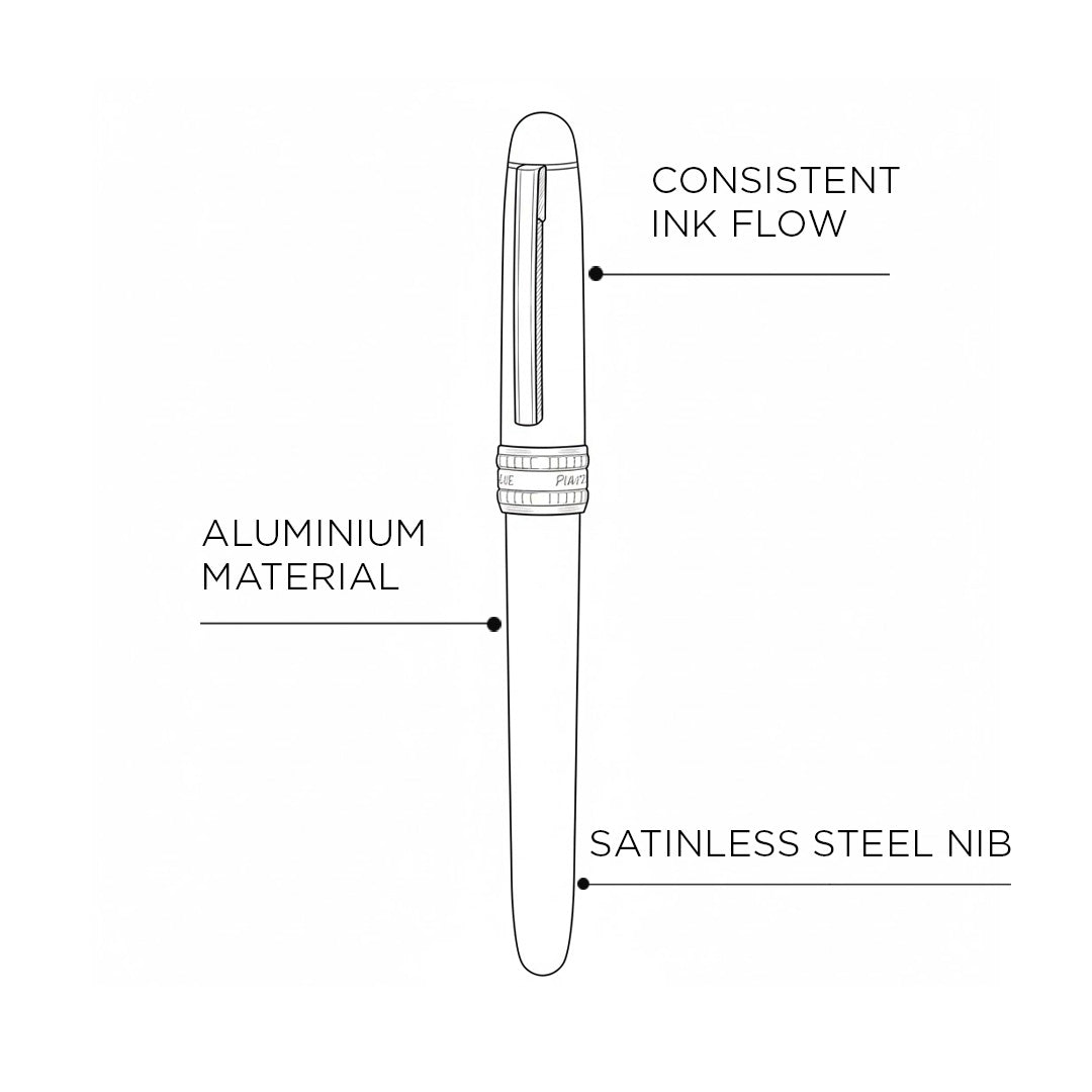 - The Platinum Fountain Pen features a sleek and durable aluminium body that offers a lightweight yet sturdy feel for comfortable everyday writing.